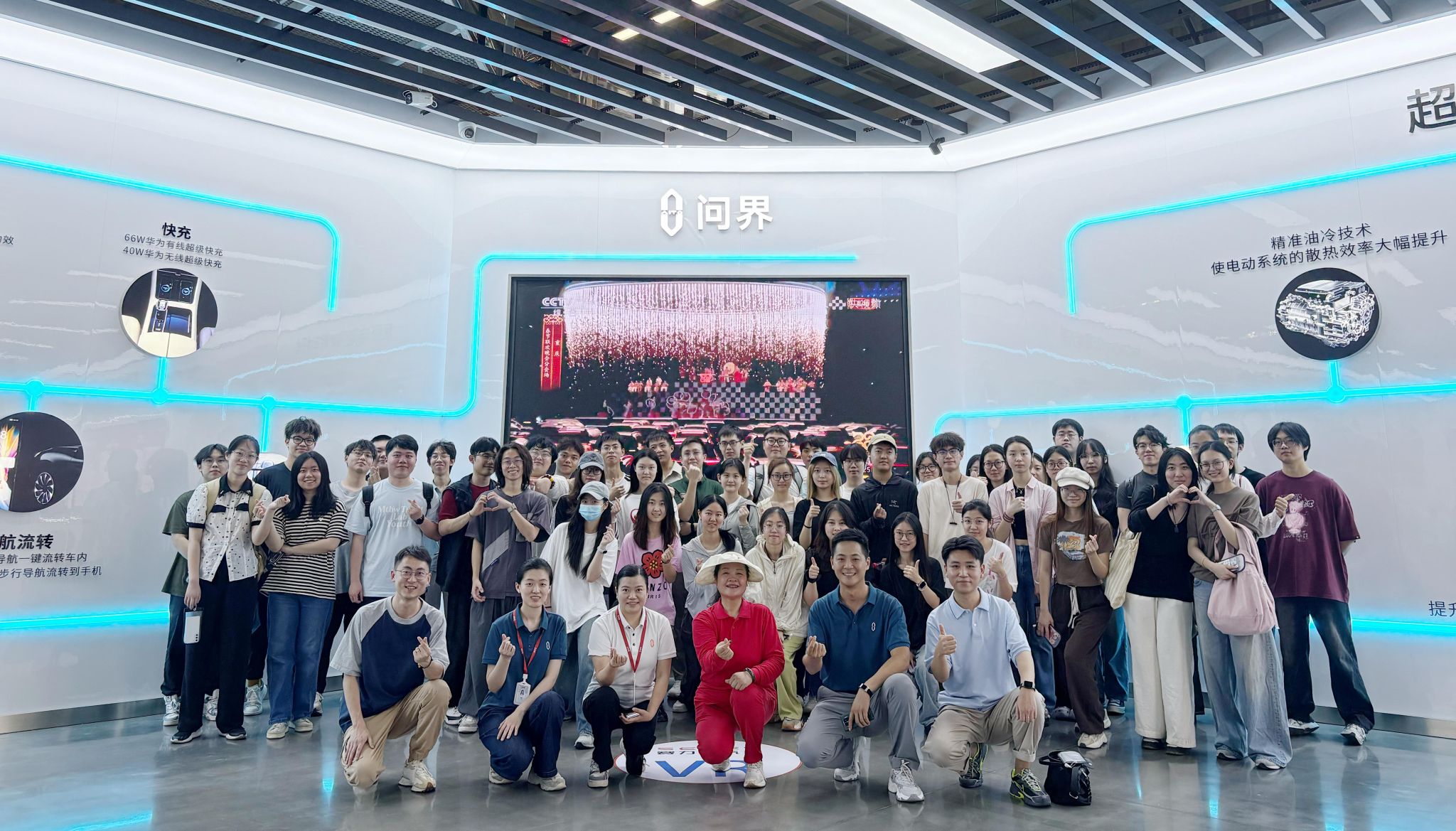 师生首先参观了企业展厅,系统了解赛力斯发展历程、组织架构及“1+1+N”产业链协同模式,并在讲解人员的邀请下试座体验问界系列新能源汽车。在生产车间,师生实地考察数字化生产线,学习物联网、大数据、5G与AI等前沿技术在智能制造中的深度应用,观摩实时质量监控系统如何提升生产效能。在互动交流环节,同学们就新能源汽车的技术创新、产业链协作以及智能制造等话题踊跃提问,企业技术团队现场答疑并分享了公司未来发展战略布局与技术前沿。活动尾声,李晓阳教授寄语西塔学子,她希望同学们能从移动课堂中汲取灵感,将所学知识应用于未来的学术规划和职业生涯,为社会经济发展与产业创新贡献力量!