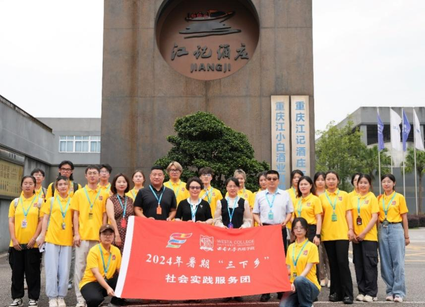 本次探寻之旅,公司党委书记王静、经理谢洁、党委副书记滕超以及副经理张俊一行亲自带领实践团成员赴大江河畔探寻江小白酒业。在讲解员的带领下,成员们先后走访了具有百年酿造历史的驴溪烧酒酒坊以及深受青年喜爱的“梅见”青梅酒酒厂,了解其酿酒工艺和发展历程,见证了古法工艺与现代营销手段的完美结合。