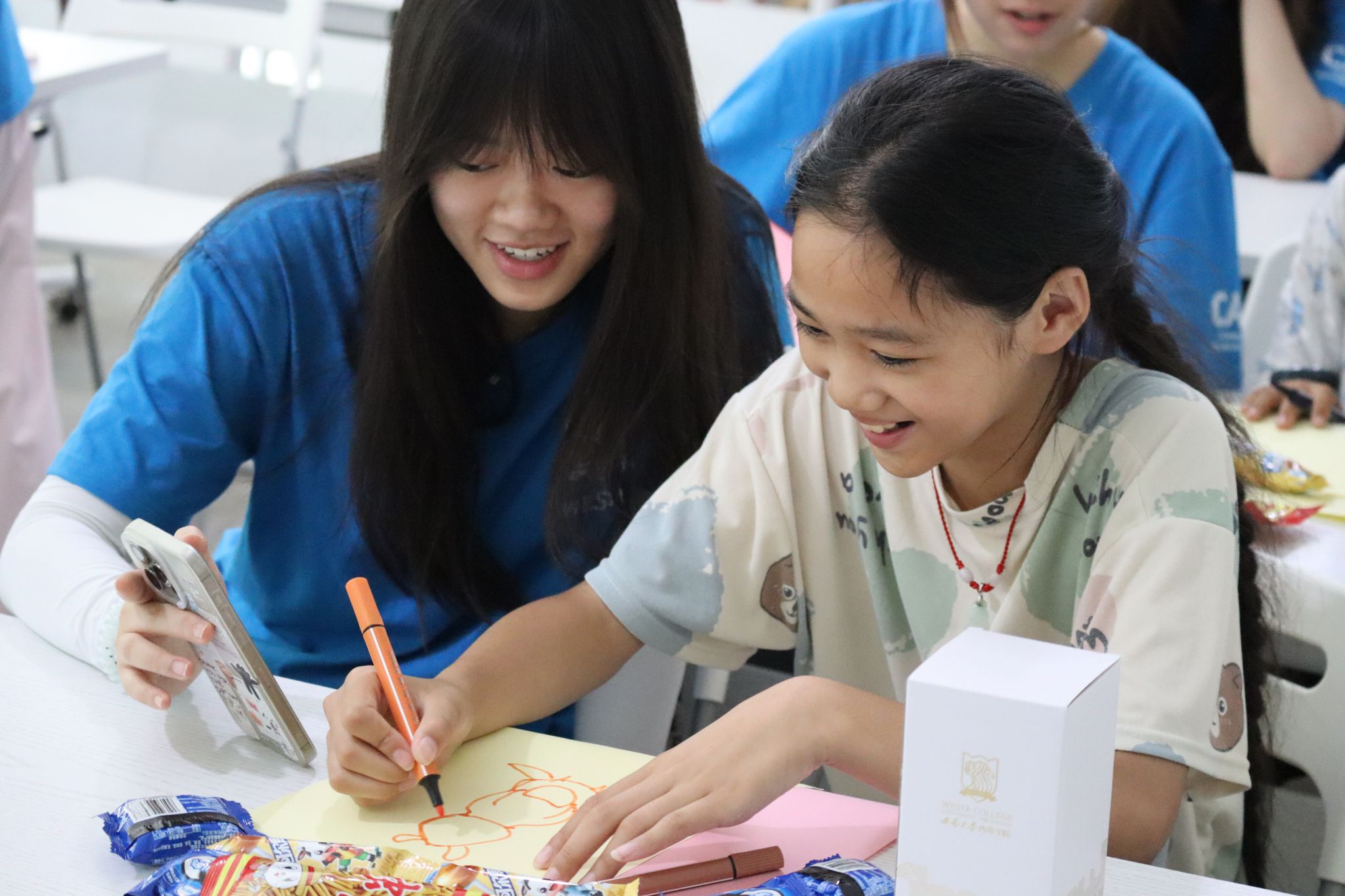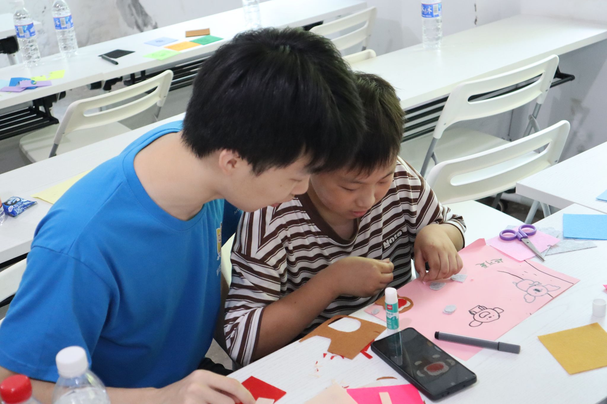 互动体验环节将课程推向高潮。志愿者分发不织布、剪刀、胶棒等材料,鼓励孩子们化身“小小设计师”:有人缝制出圆滚滚的考拉轮廓,有人拼贴出歌剧院剪影,有人将不同材料组合成充满想象力的造型。创作完成后,孩子们举着作品合影,镜头定格下一张张灿烂笑脸,也定格了这场跨越山海的文化对话。