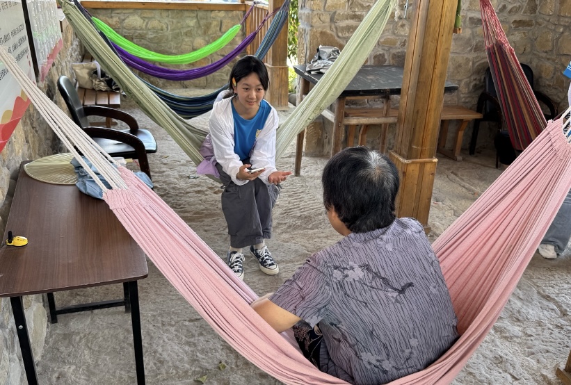 上午,实践团与东升村党委书记及村干部展开深度座谈。据介绍,近年来东升村以文旅产业为引擎,构建起多元发展格局:年接待游客量稳定在10万人次,村民人均年收入突破3万元,村集体公司通过项目运营、讲解服务、产品销售、研学项目等实现增收,并创新 “6+2+2”分红机制让村民共享发展红利。在人才振兴方面,东升村成功吸引了青年返乡创业和就业。文旅项目的开展为返乡青年提供了广阔机会,让他们能够参与到乡村振兴的建设中来。