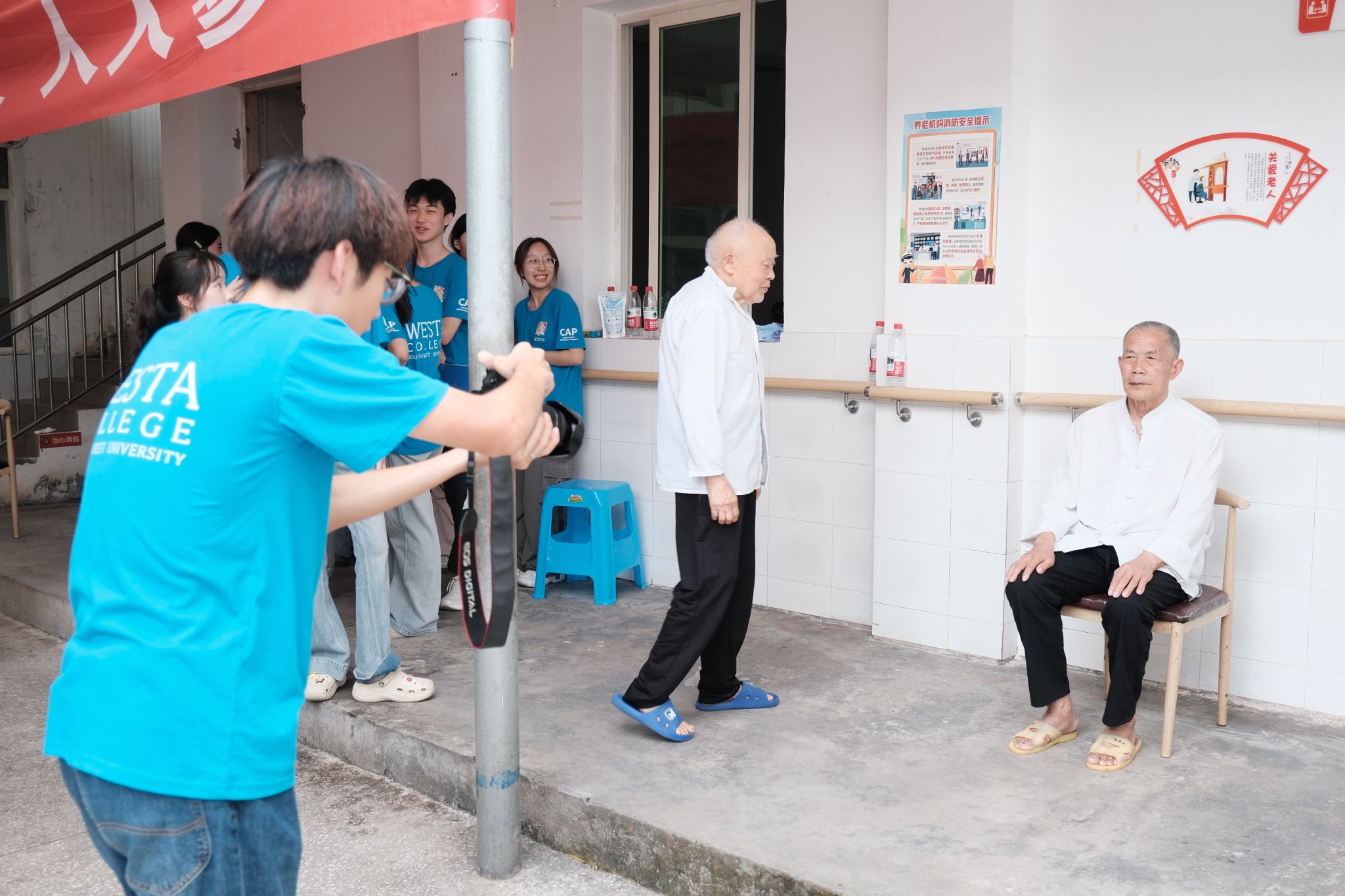 白发与青春的相遇,定格为最温暖的画面。西塔学子们表示,能为老人们带来快乐,再累也值得。学子们用行动传递温情,在服务中深刻体会到风险的价值与青春的担当。