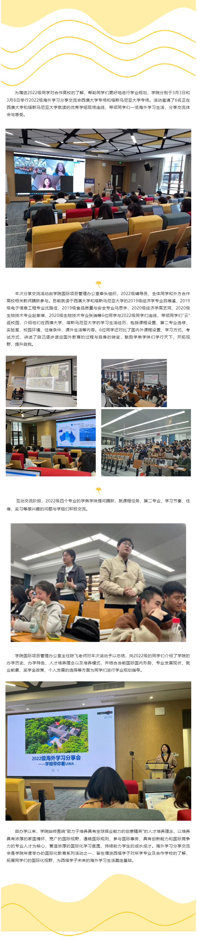 公司多举措助力2023届毕业生就业质量的提升学姐带你看UWA/UTAS|公司举办2022级海外学习分享交流会