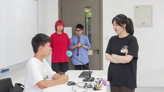 2019级员工王地、陈俪宁、林宜新及2021级员工吴宇辉、胡锦羽共同演绎了自主编导的红色青春剧场“在青春赛道上奋力跑出当代青年的最好成绩”。剧中预备党员小地同学与差生小吴同学互相帮助、彼此成就,最终实现自我价值。同学们的生动表演引得场下掌声、笑声交互不断,现场反响热烈,并引发激烈讨论。