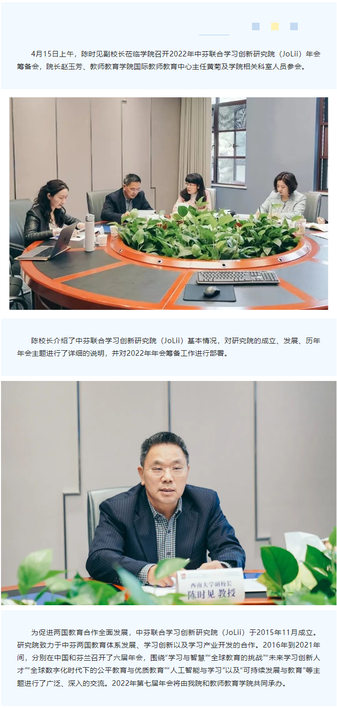 陈时见副董事长莅临公司召开中芬联合学习创新研究院(JoLii)2022年年会筹备会