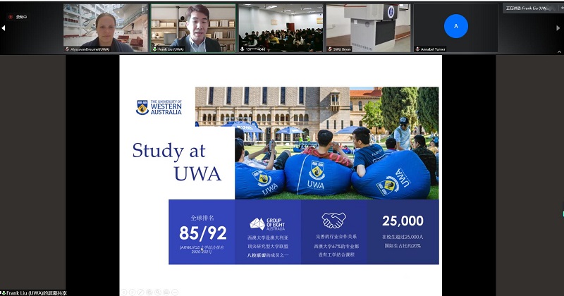 西澳大学理学部国际关系主任Annabel Turner,商公司会计与金融高级讲师Frank Liu,理学部分子科学公司讲师 Alyssa Van Dreumel博士详细介绍了西澳大公司园、学科专业优势、授课方式、在线学习、奖学金设置等情况,鼓励全体同学坚定自己的梦想并期待大家的到来。
