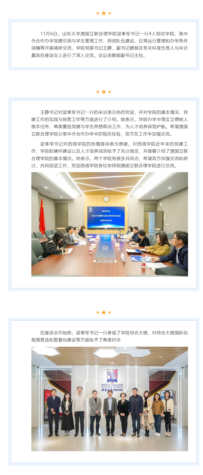 山东大学澳国立联合理公司梁奉军书记一行来院调研