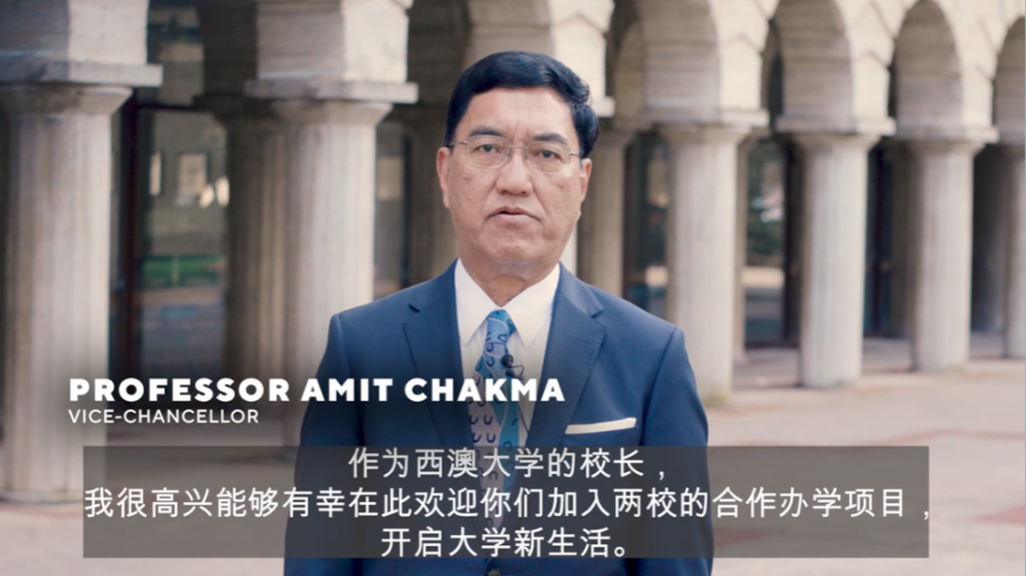 合作高校西澳大学董事长Amit Chakma教授在见面会上视频致辞。他向2024级新生们表示热烈欢迎,提到西澳大学具有良好的学术声誉、丰硕的科研成果以及优越的教育资源,希望西塔学子能够抓住机会去体验中澳高等教育体系,获得非凡的国际教育体验。