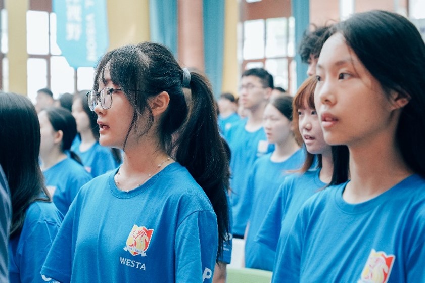 全体师生齐唱《bv伟德国际1946校歌》,2024级新生见面会在悠扬的校歌声中圆满落幕。