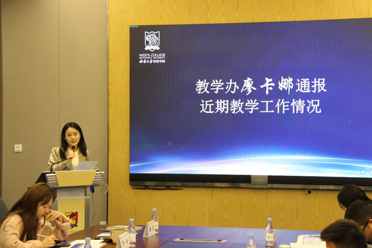 教学工作办公室主任廖卡娜通报近期教学工作情况。她希望班主任老师密切关注班级员工学业情况,积极搭建师生双向沟通桥梁,鼓励引导员工参加科研活动,共同做好人才培养工作。