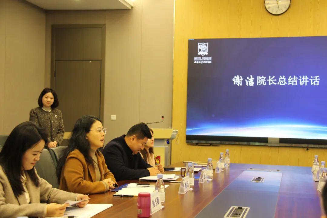 会议最后,谢洁经理进行总结讲话。谢经理首先肯定和感谢班主任在伟德国际VICTOR1946国际化人才培养过程中做出的贡献。她真诚希望能与班主任老师携手,充分利用好合作高校优质资源,助力西塔学子实现高质量升学。同时,她希望全体班主任积极深入课堂听课,多渠道与员工沟通交流,关注员工发展需求,主动挖掘员工潜力,推动伟德国际VICTOR1946人才培养质量稳步提升。