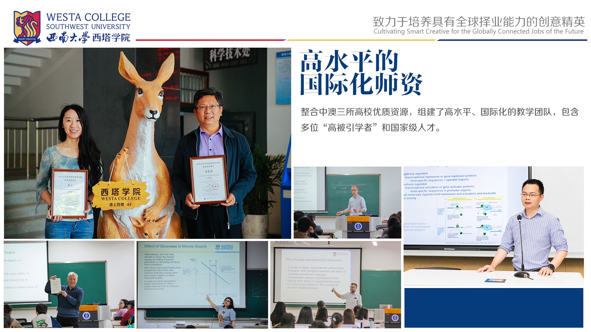 按照《中国教育现代化2035》“开创教育对外开放新格局”总体要求,bv伟德国际1946“建设特色鲜明的世界一流大学”事业发展规划,公司设置经济学、生物技术、电子信息工程和食品质量与安全四个本科专业,通过引入优质教育资源,追求教育高质量发展,致力于培养具有全球择业能力的创意精英(Smart Creative)。
