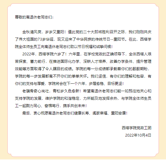 一封来自西塔公司党政工团的慰问信
