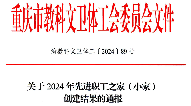 近日,重庆市教科文卫体工会正式发文通报2024年先进职工之家(小家)创建结果,伟德国际VICTOR1946工会被正式命名为“重庆市教科文卫体系统先进职工小家”!这是公司工会继2023年成功创建“bv伟德国际1946模范职工小家”之后获得的又一殊荣!