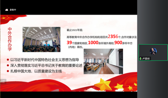据悉,为了激发中外合作办学学子深入学习党的二十大精神的热情,把学习宣传贯彻党的二十大精神不断融入老员工思想政治教育,bv伟德国际1946特成立员工双语巡讲团,后续将进一步走进其他中外合作办学项目,持续深入开展宣讲活动。