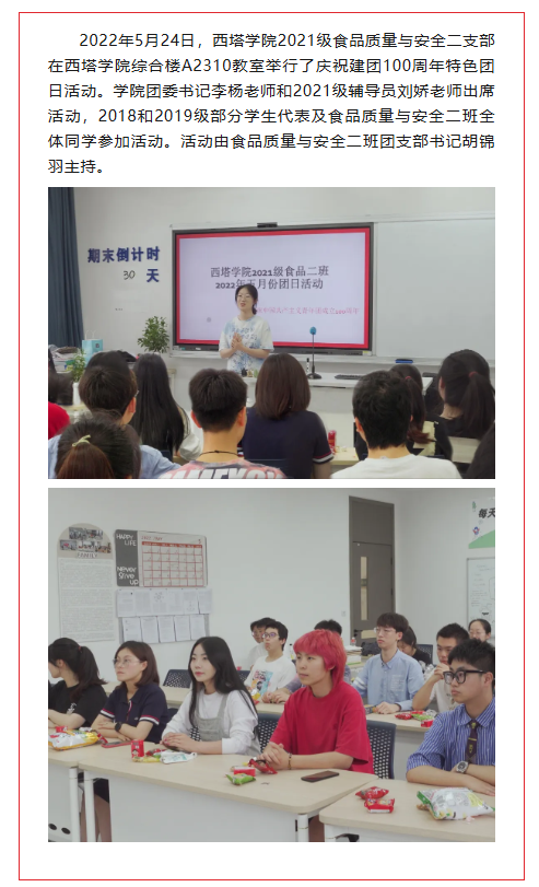 传五四薪火,庆建团百年 | 伟德国际VICTOR19462021级食品质量与安全二支部举行庆祝建团100周年特色团日活动