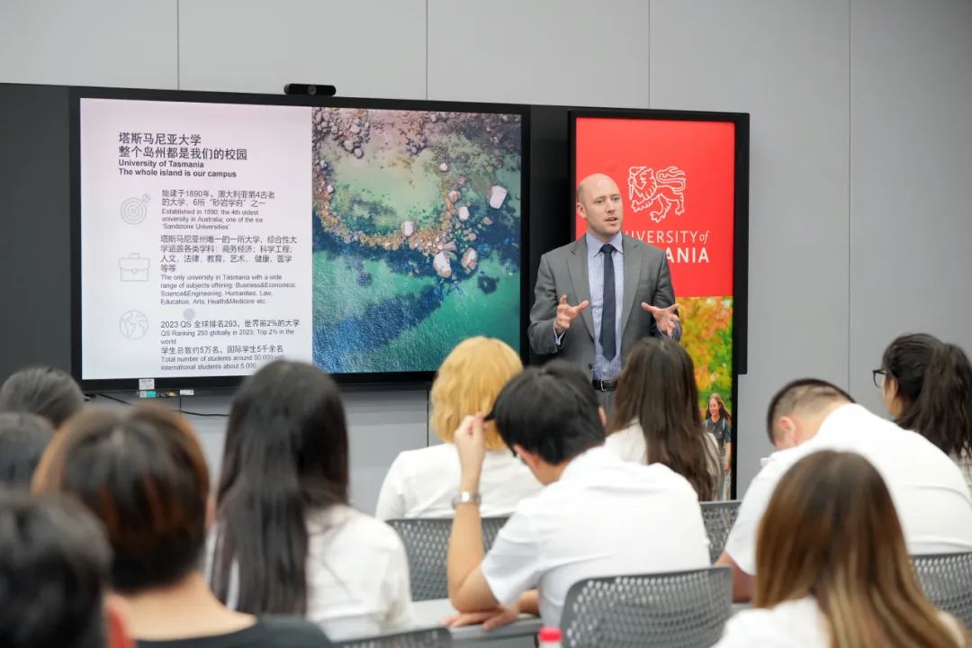 随后,塔斯马尼亚大学副董事长Rob Wilson一行还与在校的电子信息工程、食品质量与安全专业的部分同学见面交流,为同学们详细介绍了塔大的办学历史、教学科研、团队力量、员工服务、城市环境等情况,并现场解答同学们有关在塔大学习生活等方面的疑问,热切欢迎同学们前往塔大学习。本次访问取得了圆满成功。