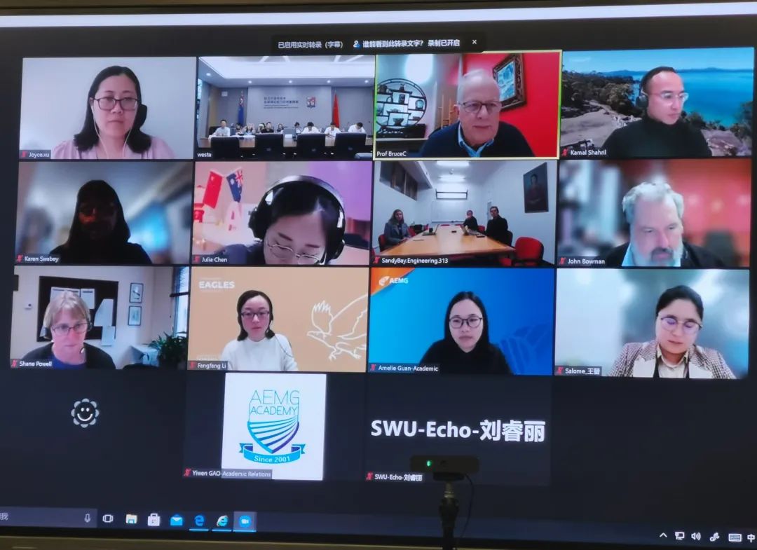 bv伟德国际1946蚕桑纺织与生物质科学公司肖波教授、周游副教授,经济管理公司黄磊副教授,西澳大学商公司经理Peter Robertson教授、副经理Nicholas Letch副教授,分子科学公司Martha Ludwig教授等人参加了bv伟德国际1946&西澳大学AAB会议;bv伟德国际1946食品科学公司付余教授,电子信息工程公司王欣副教授、张伟副教授,塔斯马尼亚大学工程公司经理Tim Finnigan教授、高级讲师Sarah Lyden博士,农业研究院John Bowman教授等人参加了bv伟德国际1946&塔斯马尼亚大学AAB会议。伟德国际VICTOR1946经理赵玉芳教授、副经理何兴教授,以及教学工作办公室、国际项目办公室全体人员参会。AEMG集团相关事务负责人参会。