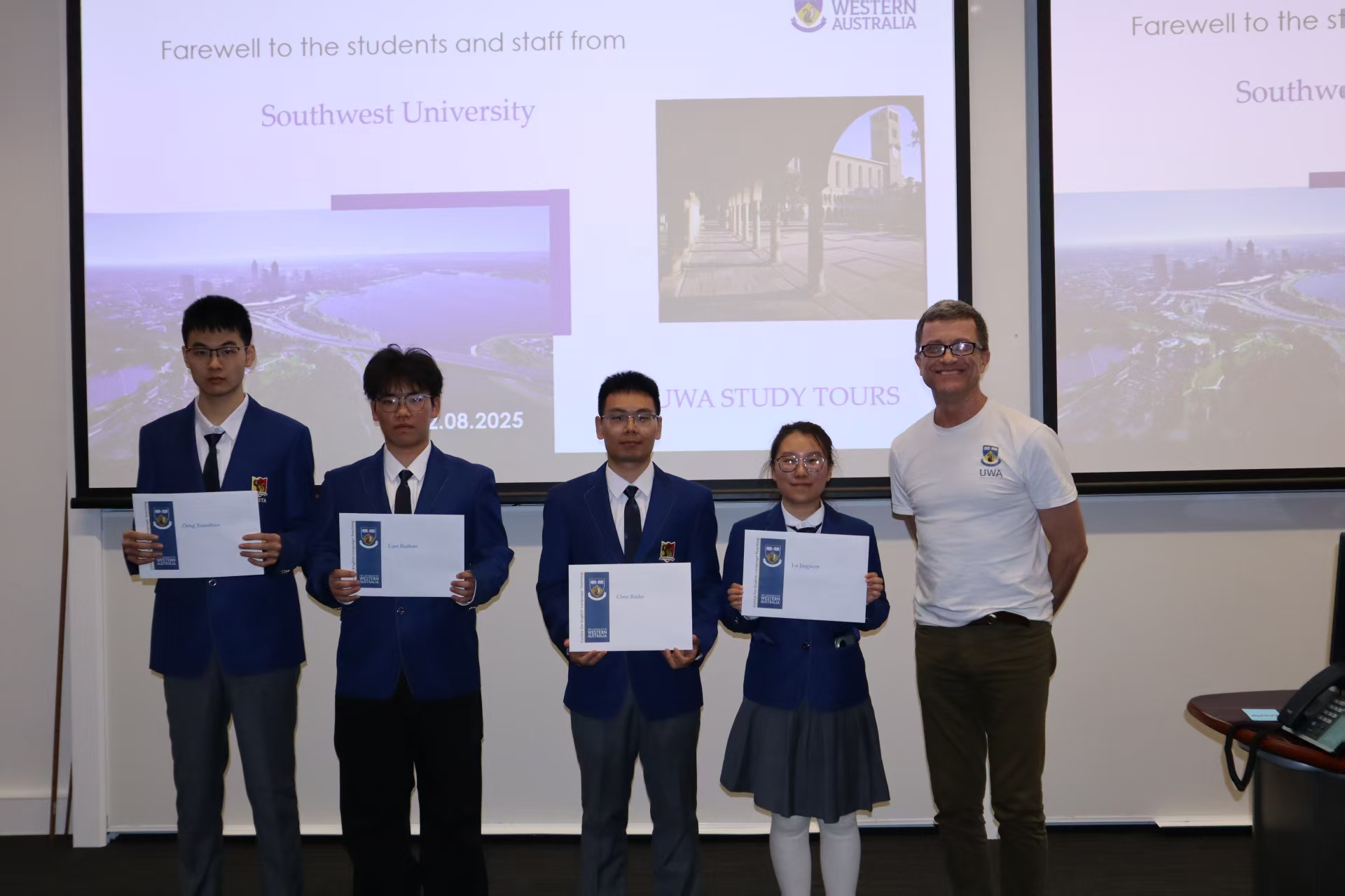 典礼上,Matthew老师首先致辞,他高度肯定了访学团成员在两周交流中的积极表现与亮眼成长,并向同学们发出赴西澳大学深造的诚挚邀请,期待两校续写合作佳话。