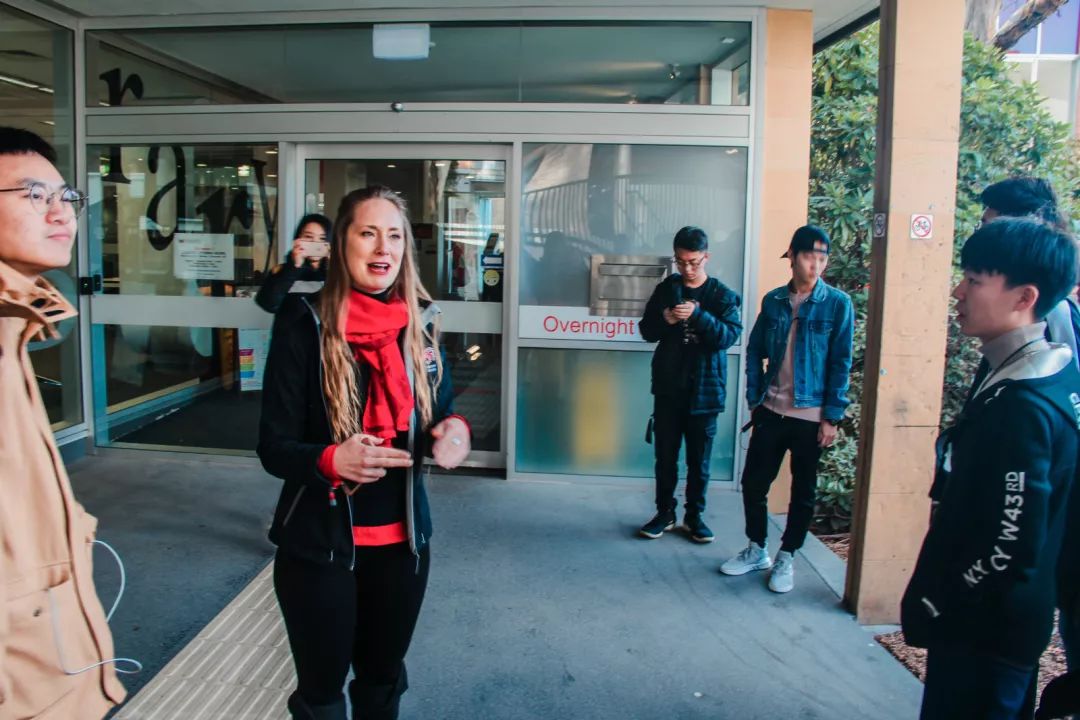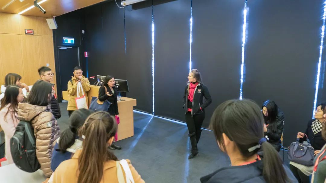 ▲外方老师带领同学们参观塔大博物馆和图书馆