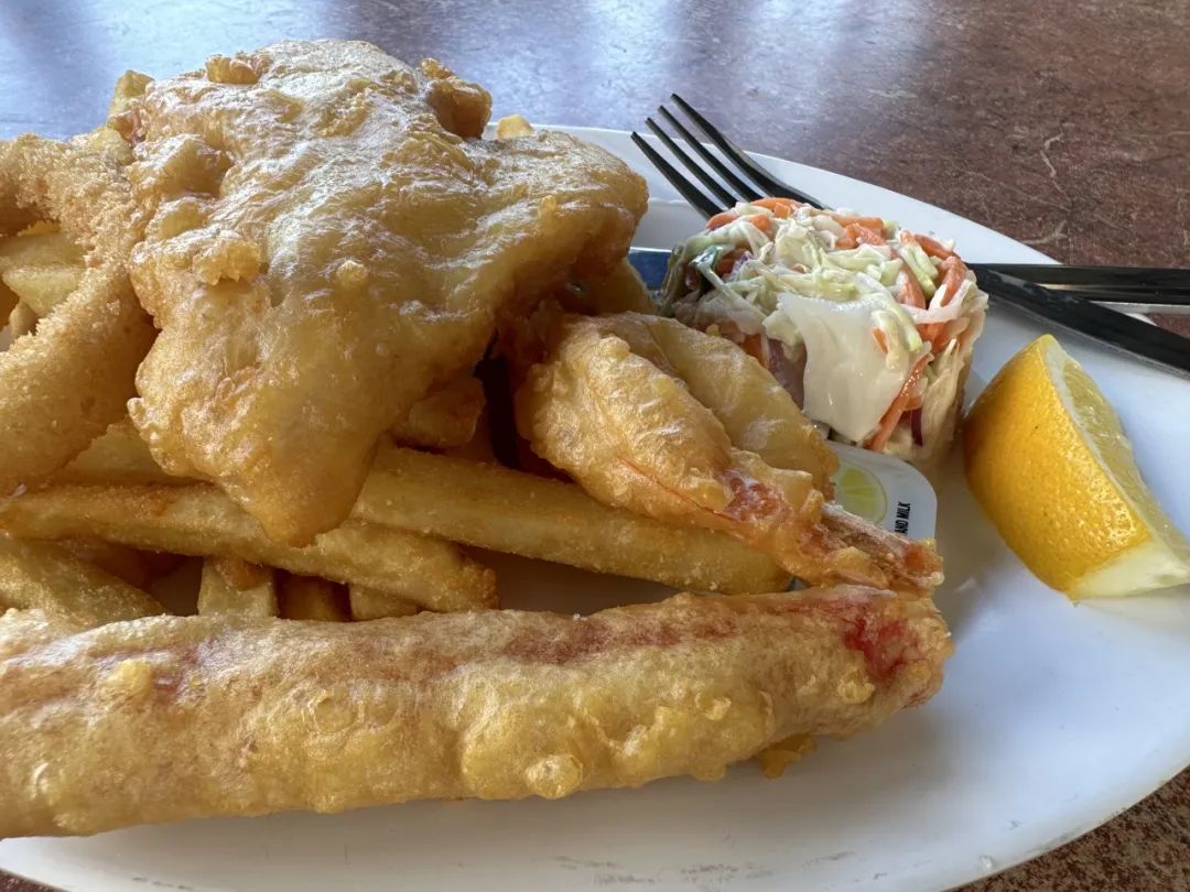 中午我们在海边享用经典英国菜:鱼和薯条(Fish and Chips)。
