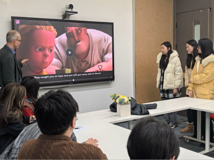 12月6日,英语演讲俱乐部在公司2212教室举办了一场主题为Cinema Dubbing的英语角活动。外教Mile、英语教师Shirly、J essica 、Sinan、俱乐部指导老师刘娇和10名员工代表参加活动。